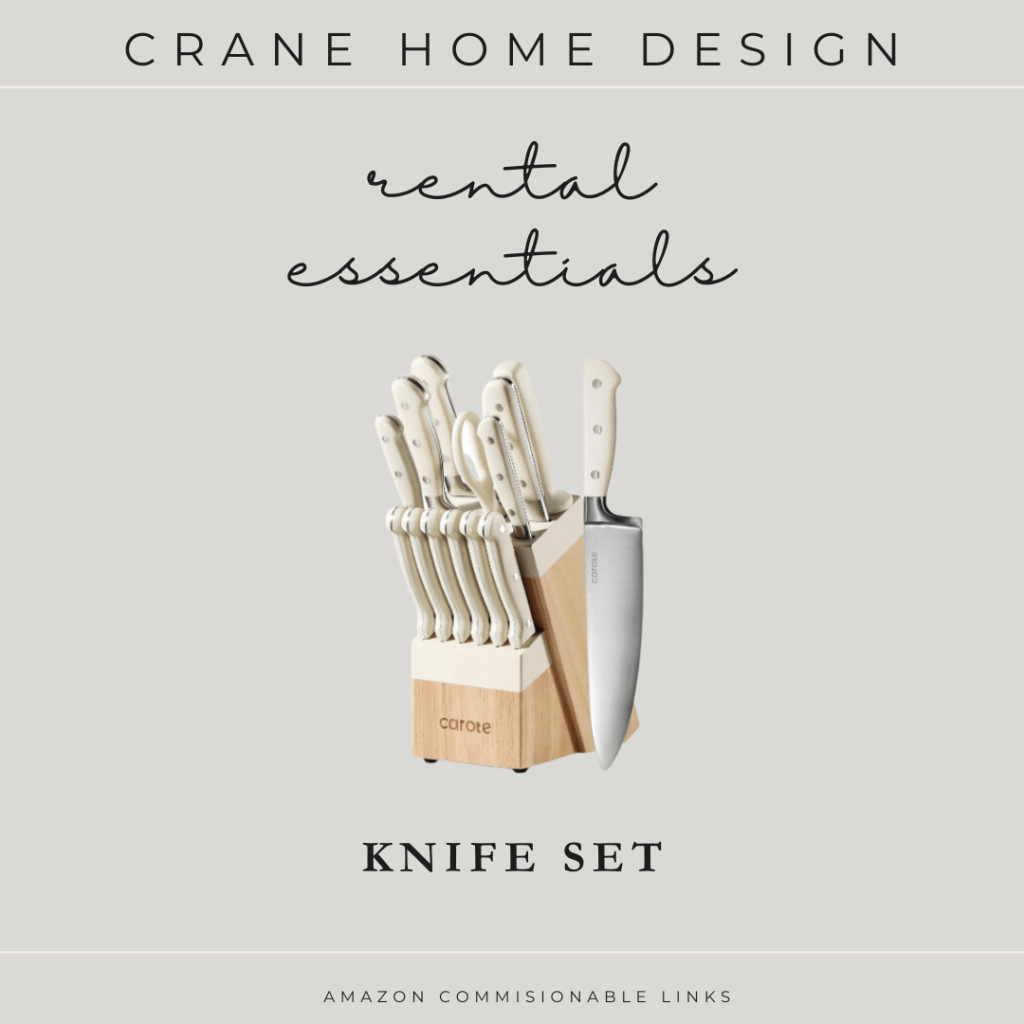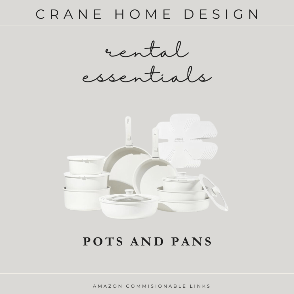These pots and pans are perfect for rental properties. They strike a great balance between affordability and performance, delivering solid results with a sleek appearance. Their design allows for easy stacking and organization, making them ideal for small or limited storage spaces. I’m also a fan of this brand’s utensils and knife sets, which I’ll be highlighting as well!
