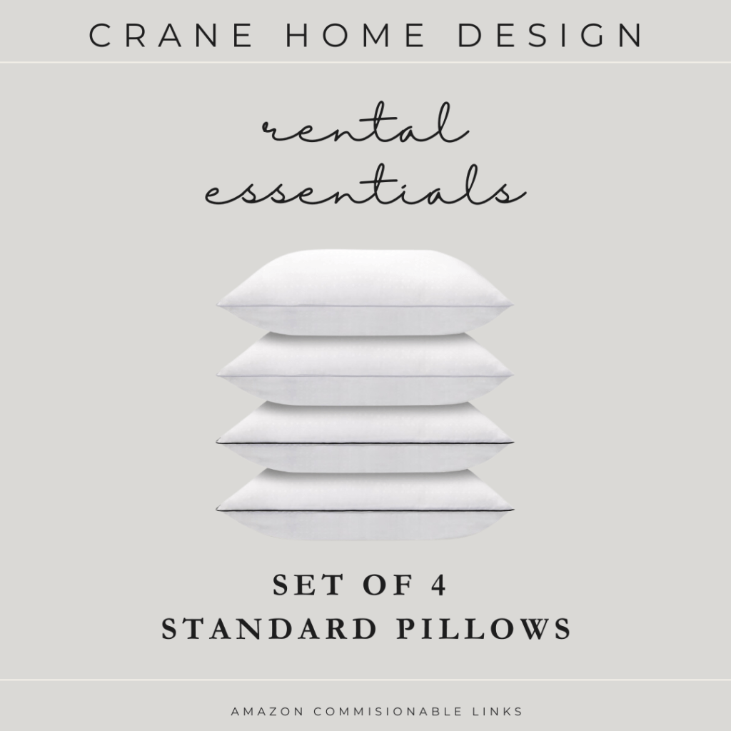At just $7.50 per pillow, you really can’t go wrong! Pillows are often replaced a few times a year, so it’s wise to use pillow protectors to extend their life. Here’s a helpful tip: for a queen or full bed, use 4 pillows; for a twin bed, use 2 pillows; and for a king bed, opt for 4 king-size pillows to achieve a balanced and inviting look.
